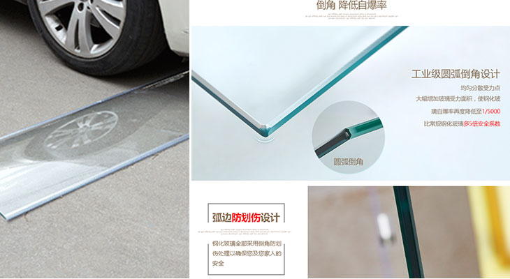 产品材质:5重安全防爆玻璃、高工艺力学结构吊夹、10K镜面、304不锈钢框架、隐形防爆安全膜