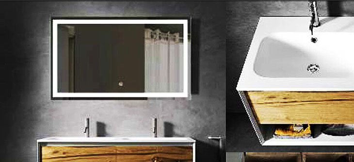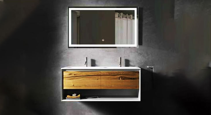 产品材质:环保高清智能除雾LED镜、泰国橡木+酸枝原木、纳米微晶石