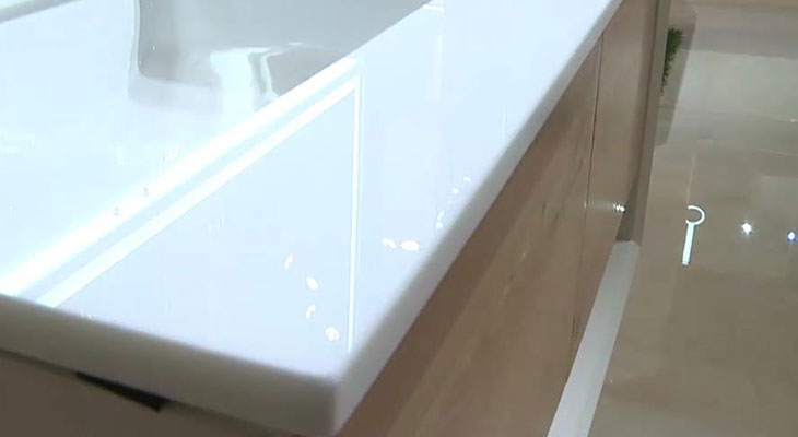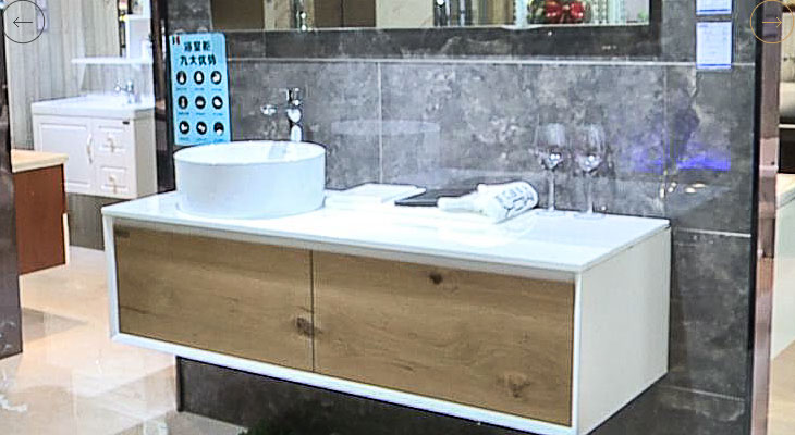 产品材质:环保高清智能除雾LED镜、大理石台面+自洁台下盆、泰国橡木+烤漆