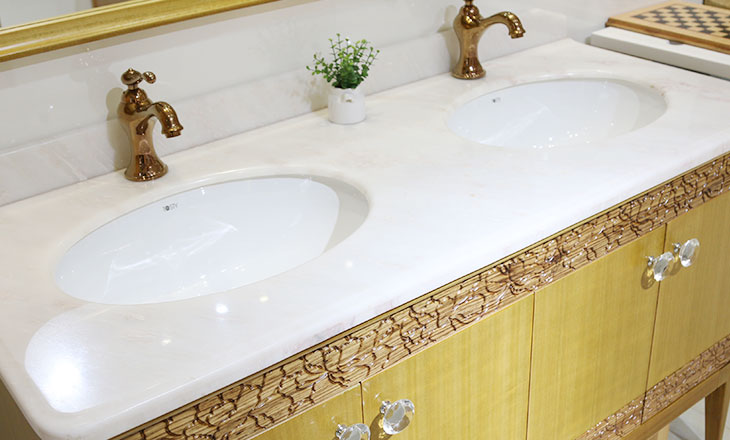 天然大理石台面,材质纹理清晰,每一块都独一无二,便于清洗,坚固耐用。