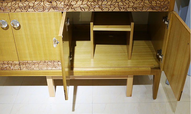 素色东方浴室柜以精美卓越的品质为使用者提供细致入微的感受,用简洁的线条表达深远的意境,摒弃了传统的张扬和轻飘,于独特中体现内涵,于自然中升华品味。金丝柚的纹理被清漆完美的保留,优美的墨线、斑斓的油影,整体构成了千姿百态的自然纹理。