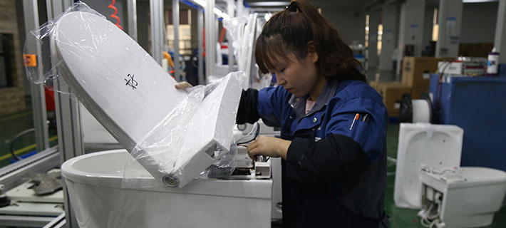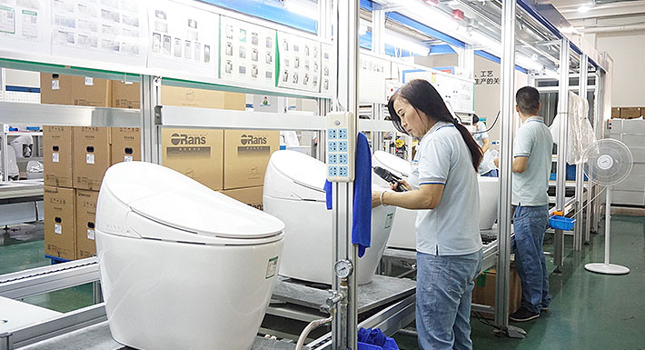 欧路莎台州生产基地包括浴室柜生产线、4条智能马桶总装线,生产设备数控化,生产过程无纸化,以高科技含量和高性价比构筑新的技术门槛。欧路莎卫浴人工智能实验室,采用高于行业和国家标准的“企业标准”,每一款成品进行三道自检,通过精密、科学、智能的设备对产品进行性能、老化、破坏等全方位实验检测和数据分析,以此保证每一款新品的质量达标。
